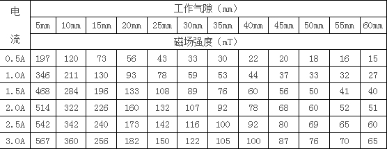 3.0、磁場(chǎng)參數(shù)表 (大于30毫米的磁場(chǎng)是拆卸后測(cè)試)